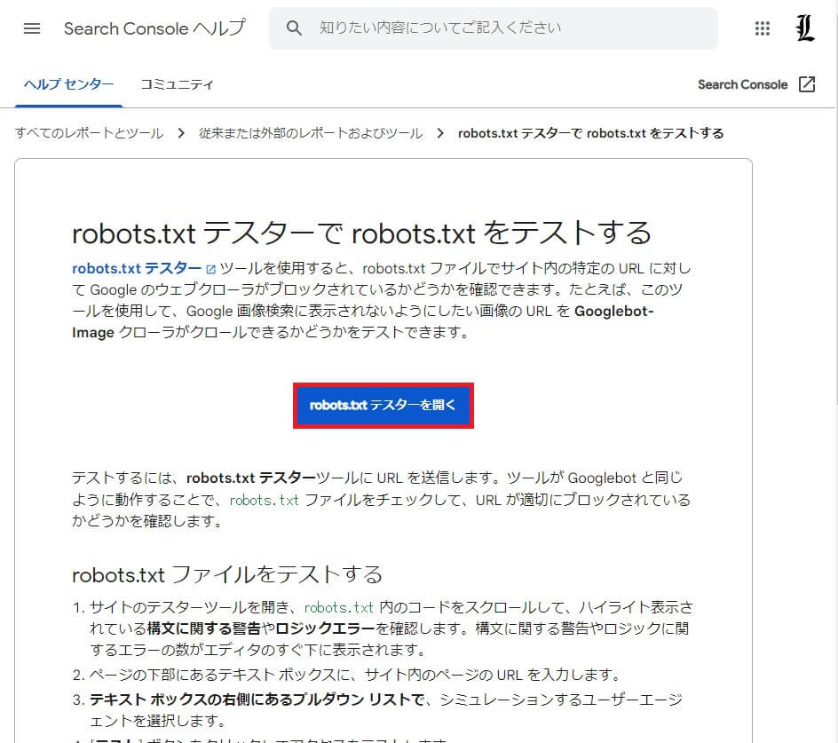robots.txtテスターでrobots.txtをテストする