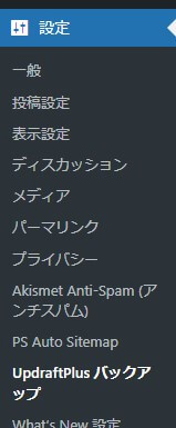 設定のところに、「UpdraftPlus バックアップ」とあるので、そこをクリックします。
