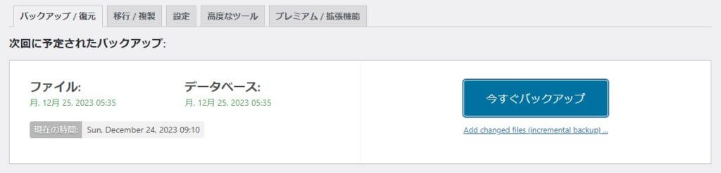 移転元と同様にして、移転先にUpdraftPlusプラグインをインストールし、設定してください。