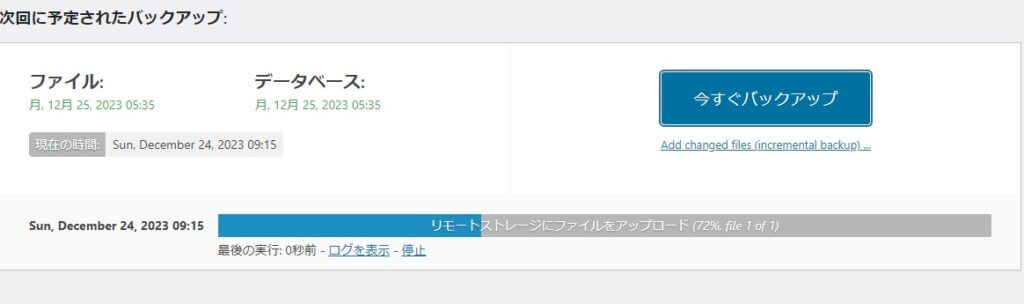こんな感じでバックアップファイルが確認できれば、OKです。