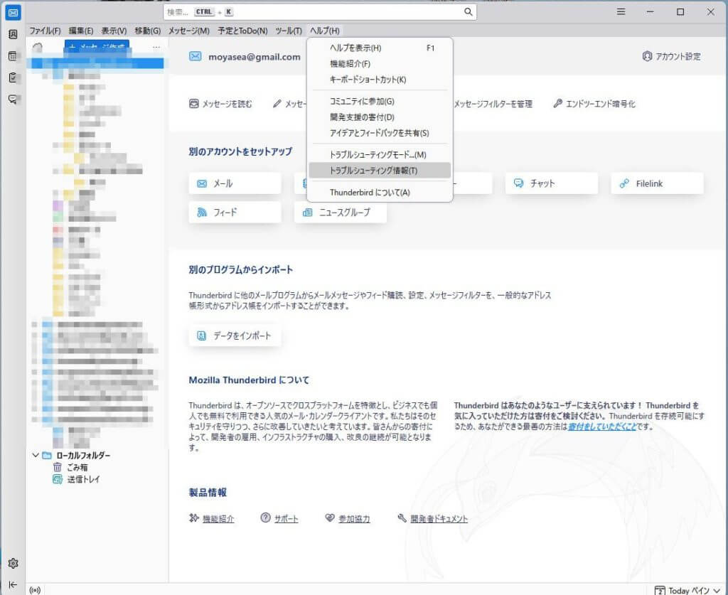 Thunderbird(メーラー)をバックアップする
