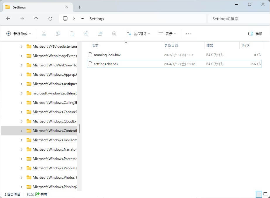 setteings.datは、件のフォルダに新しいファイルが生成されていましたが、