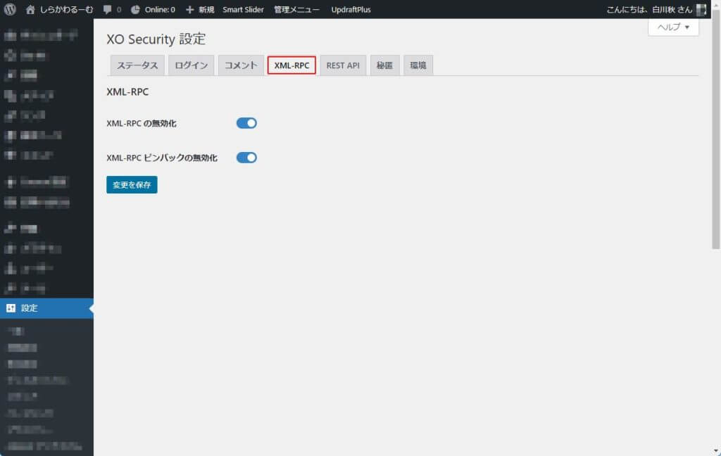 | XML-RPC ピンバックの無効化 | 「オン」にします。 |