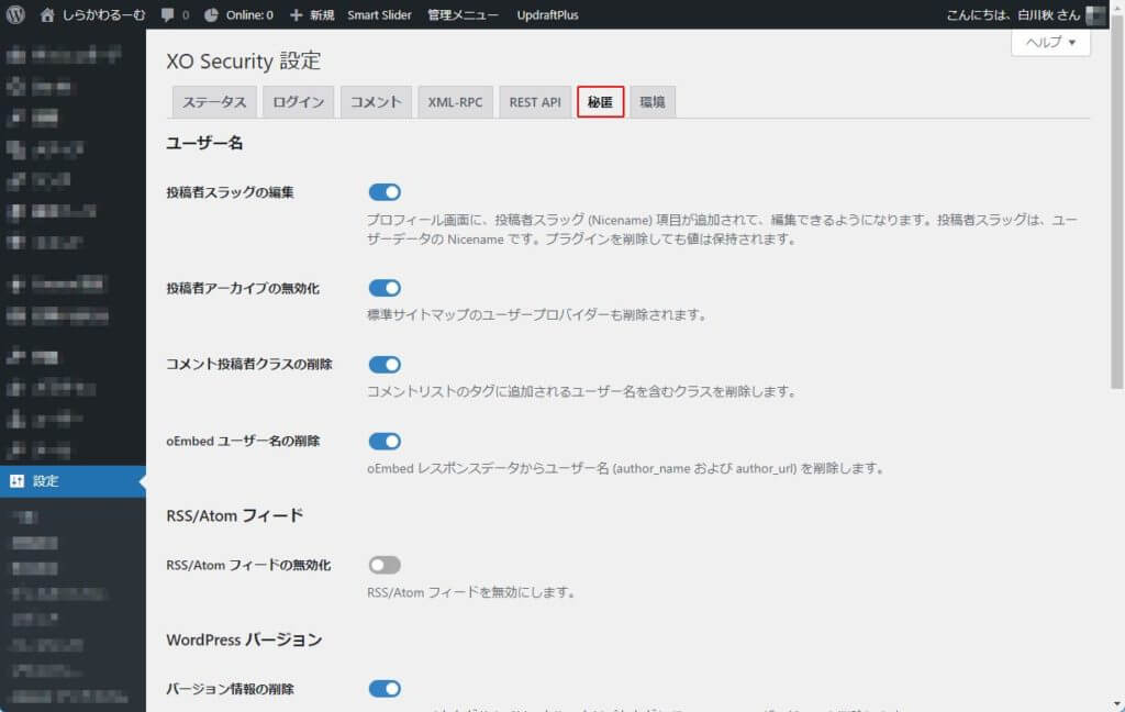 「ログイン」タブ、「コメント」タブ、「XML-RPC」タブ、「REST API」タブ、「秘匿」タブ、「環境」タブの6つの設定だけで、簡単によりセキュアな環境を作り出すことができます。