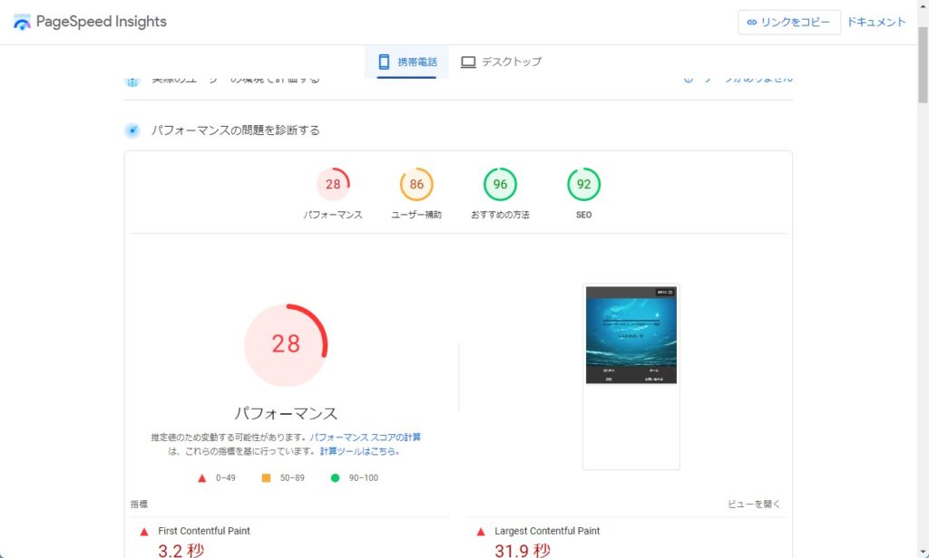 パフォーマンスを改善する前は、28しか数値が出ませんでした。