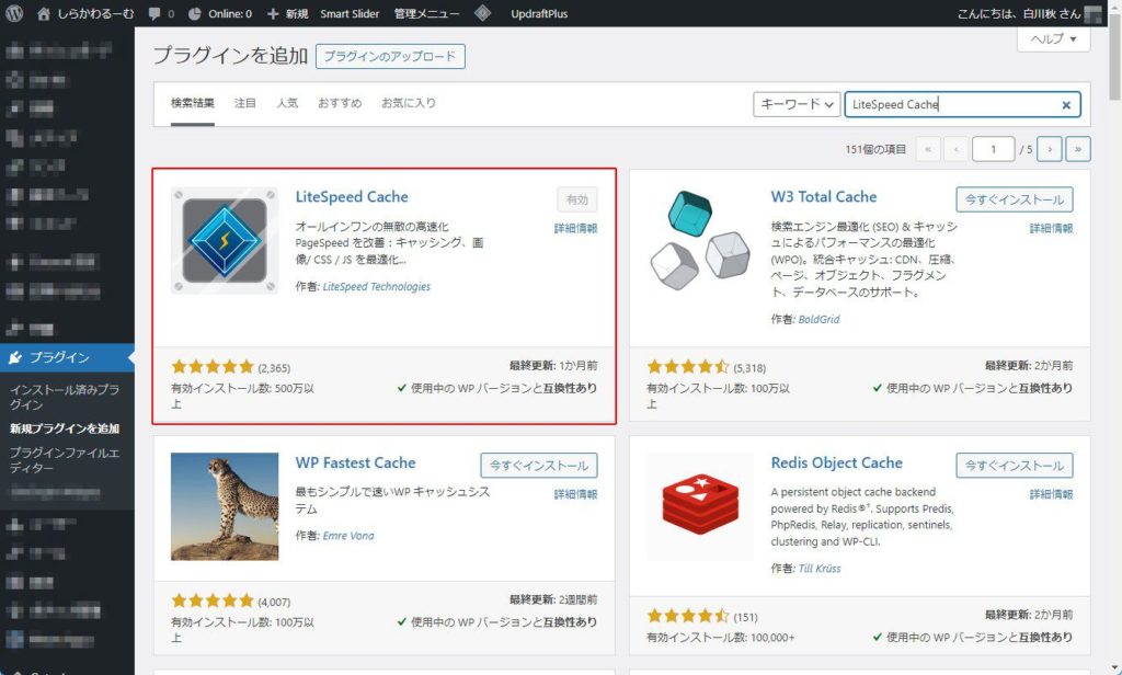 プラグイン:LiteSpeed Cache(作者:LiteSpeed Technologies)の導入