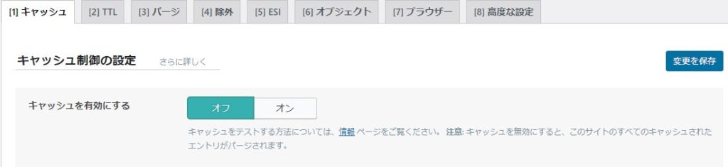 注意点は、キャッシュを使うのでうまく更新されないものが出てくるときもあるでしょう。そのようなときは、「LiteSpeed Cache」>「キャッシュ」の「キャッシュを有効にする」の設定を一旦「オフ」にして「変更を保存」し、「オン」にして「変更を保存」を押してキャッシュを一旦クリアすることで解消されるはずです。