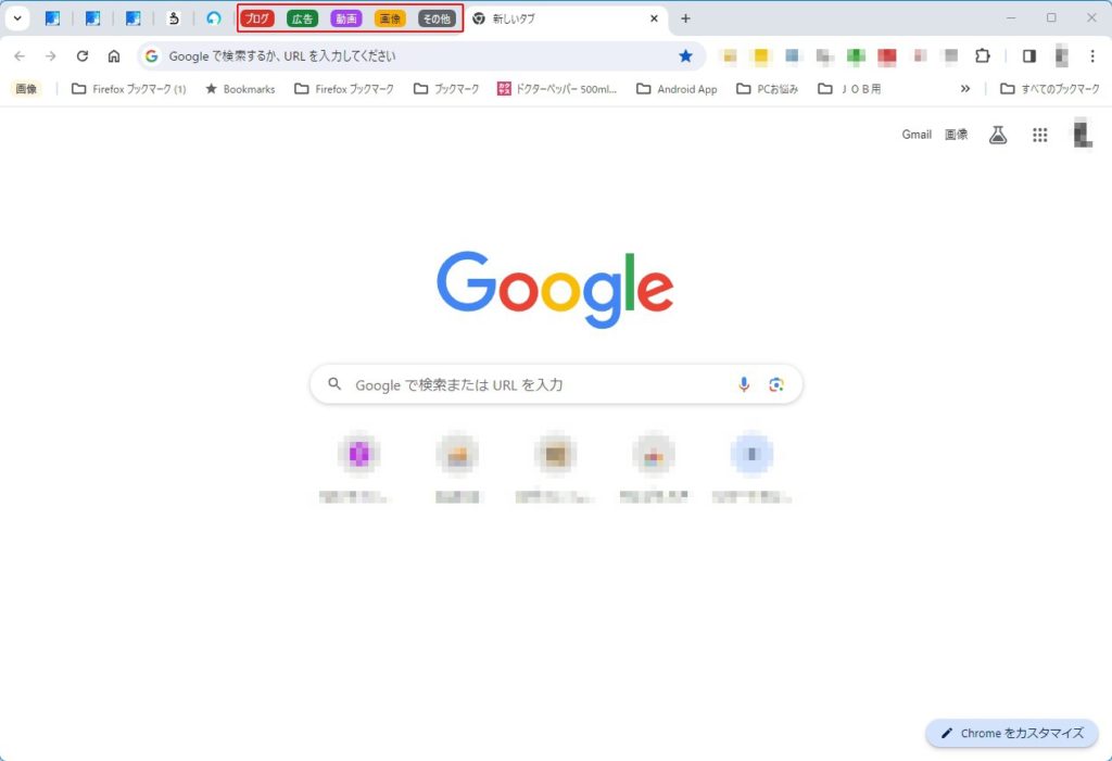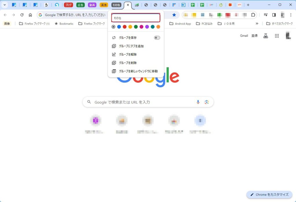 この図では「ブログ」「広告」「動画」「画像」というタブグループを既に作っています。これから新規に「その他」というタブグループを作ってみたいと思います。