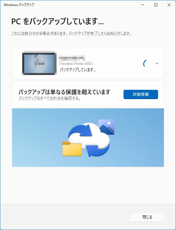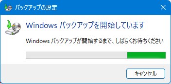 次の画面のようにバックアップが進行中になりますので、しばらくお待ちください。