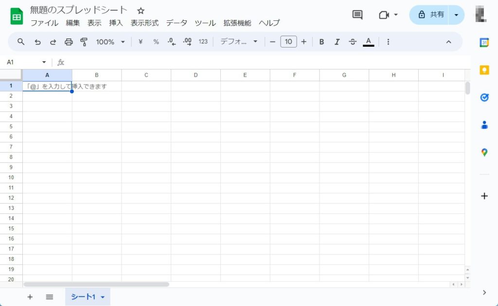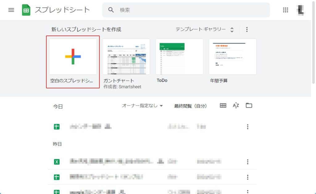 スプレッドシートを開いて、「空白のスプレッドシート」を作成します。