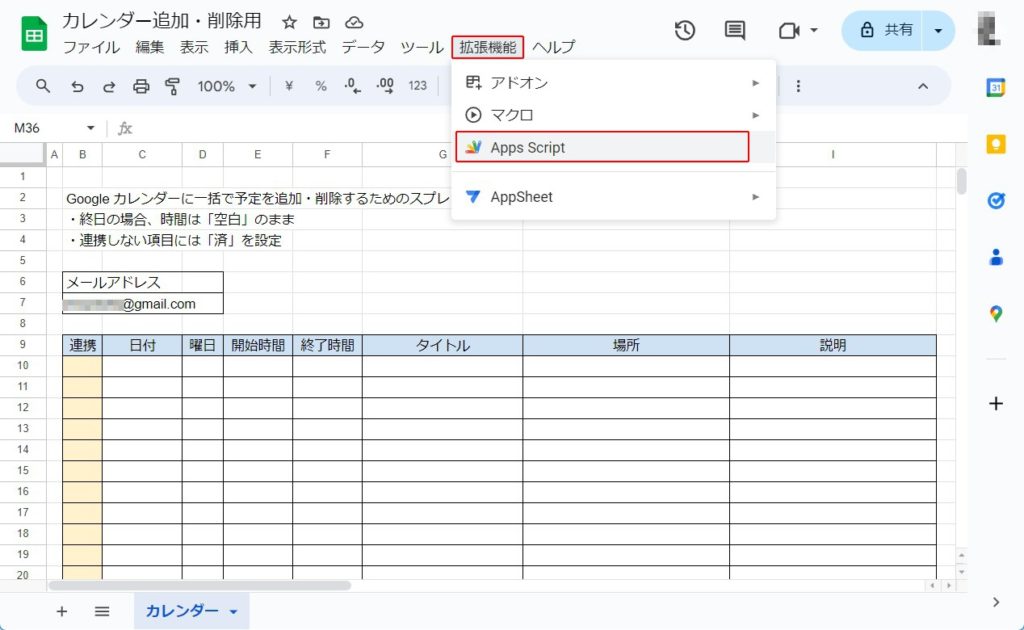 スプレッドシートからGoogleカレンダーに簡単に予定を登録する方法(初心者向け) | Googleスプレッドシート 完全攻略