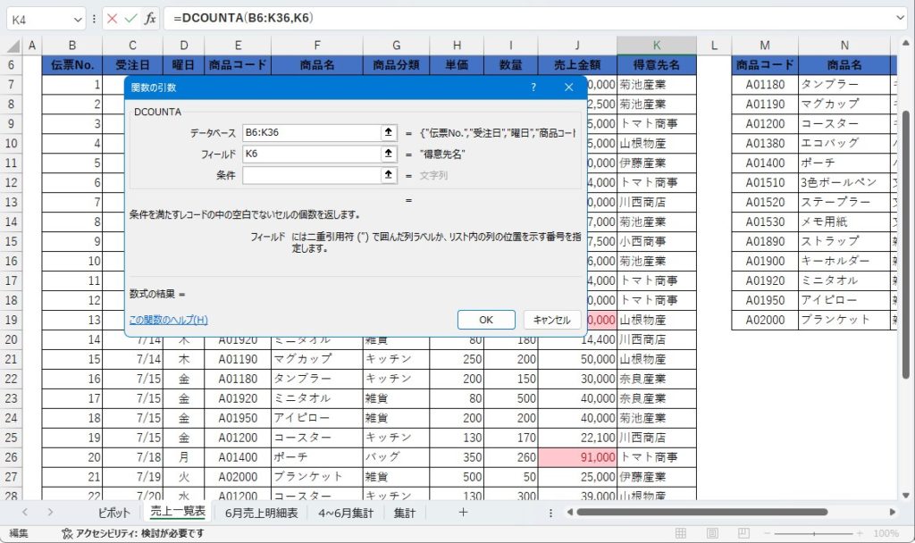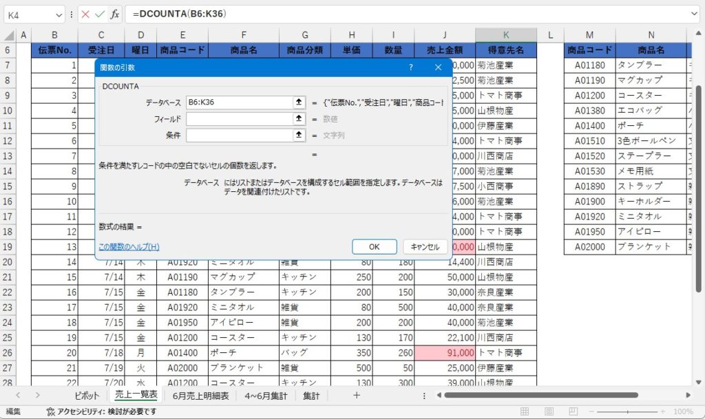 DCOUNTA関数を用いてデータを簡単にカウントする方法