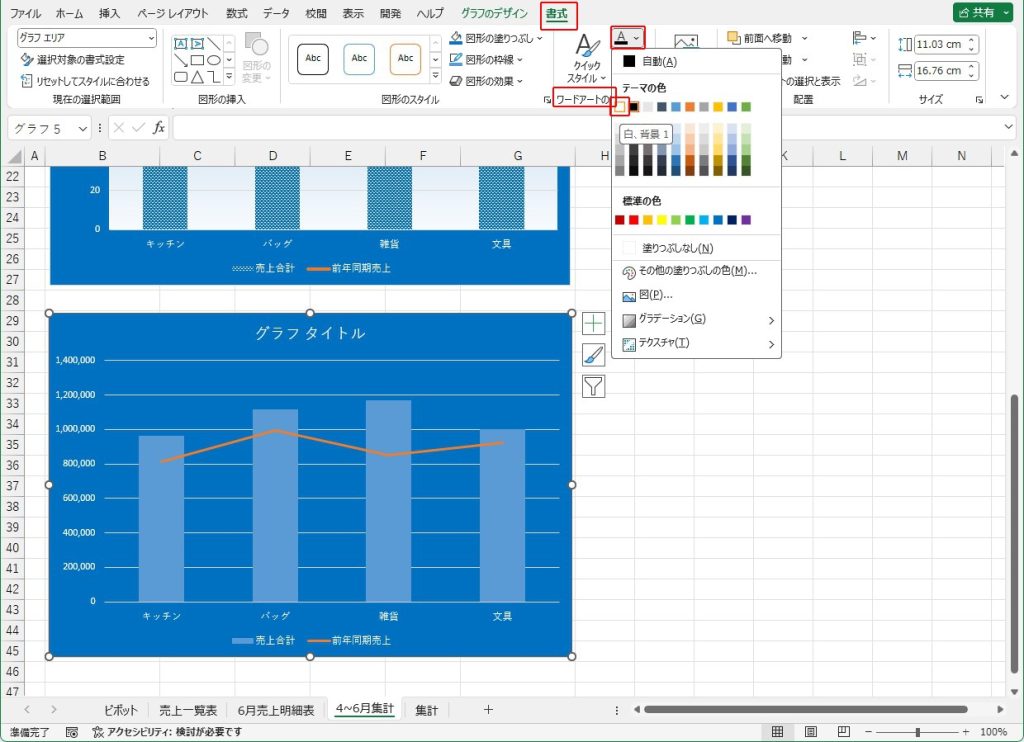 | グラフ エリア | フォント の色 | 白(背景1:テーマの色: 1行1列目) |