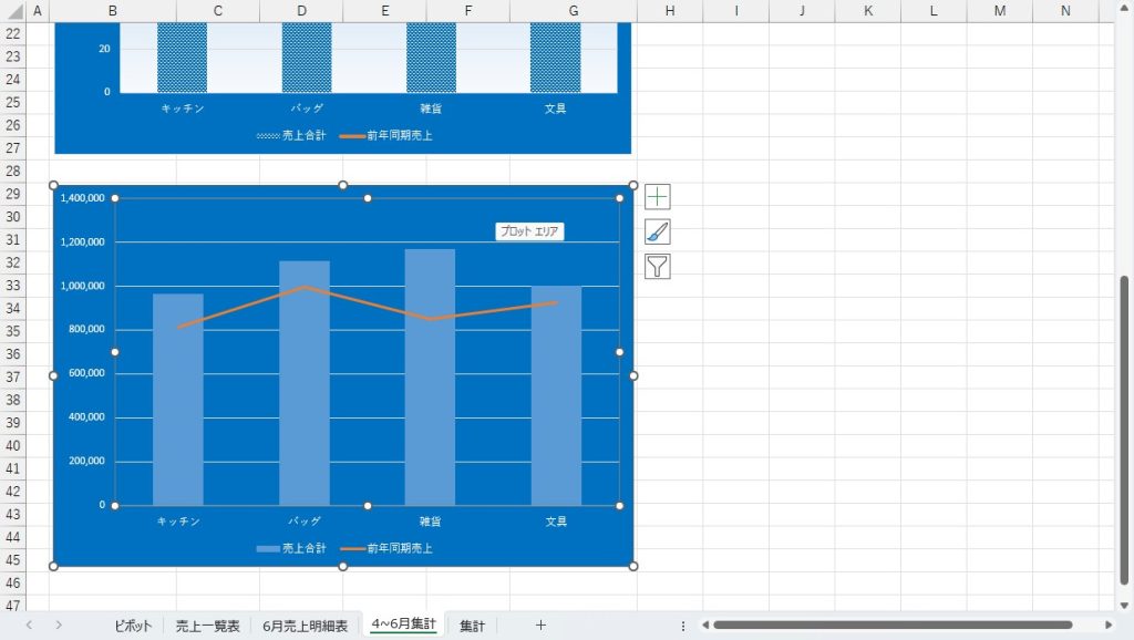 「プロットエリア」とは「系列(棒・折れ線)」があるエリアを指します。