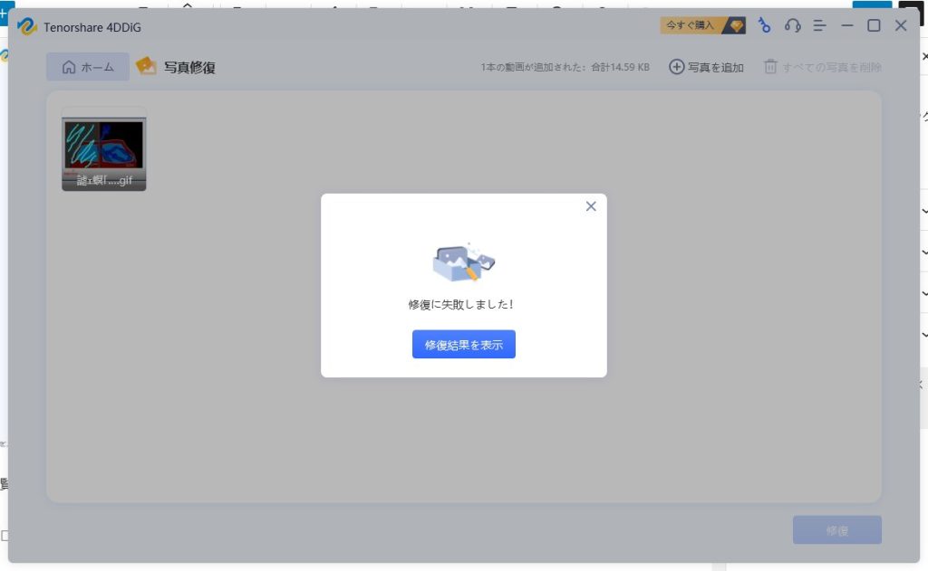 あれですね。やっぱりきっと、「.gif」は対応していなかったんでしょうね。とりあえず、「修復結果を表示」をクリックして、内容を見てみます。