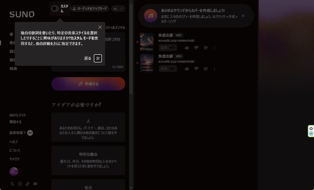 独自の歌詞を書いたり、特定の音楽スタイルを選択したりすることに興味がありますか?カスタム モードを使用すると、曲の詳細をさらに指定できます。