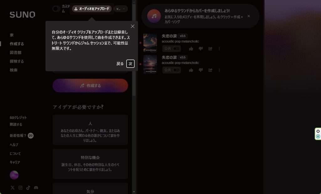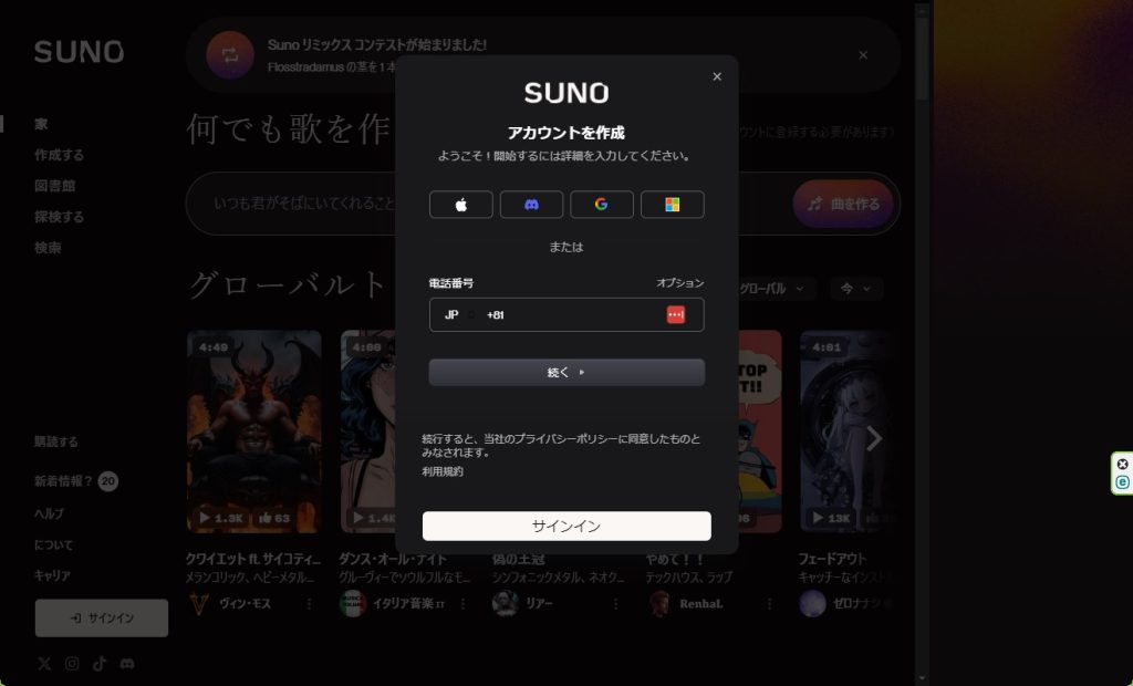 AI作詞作曲サイト『Suno』で音楽を作成してみた