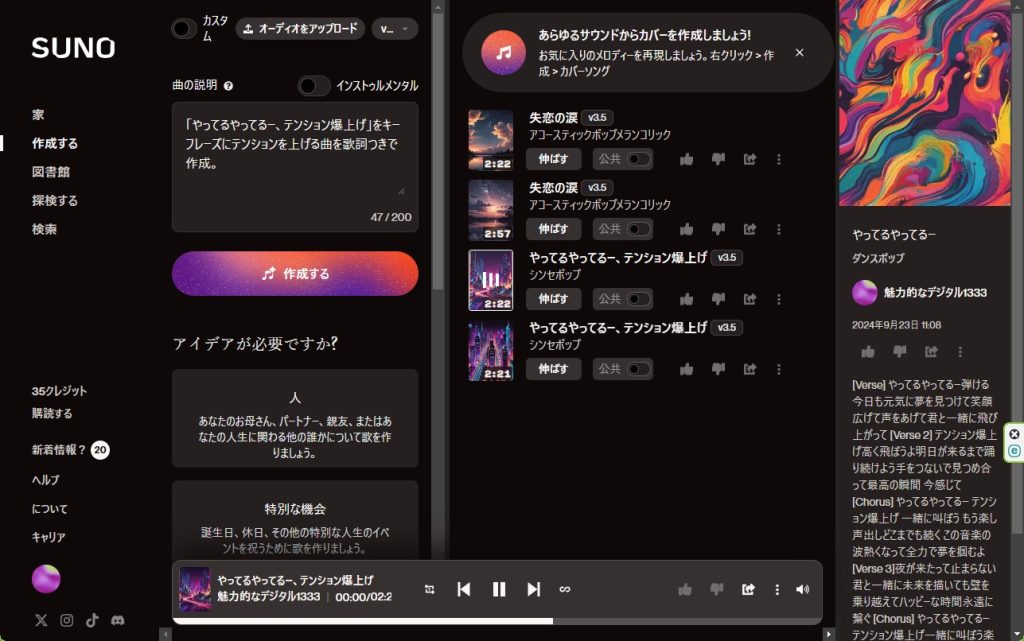AI作詞作曲サイト『Suno』で音楽を作成してみた