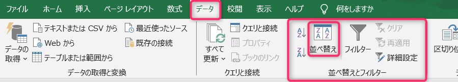 Excelの[並べ替え]はどこで行えるのでしょうか?
