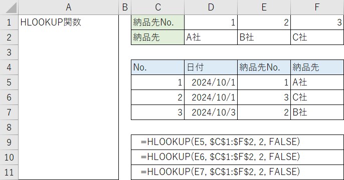 - HLOOKUP関数の「H」はHorizontal(水平)を意味し、VLOOKUP関数の「V」はVertical(垂直)を意味する