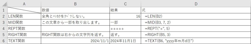 - 文字列:対象となる文字列を指定します。セル参照も可能です。
